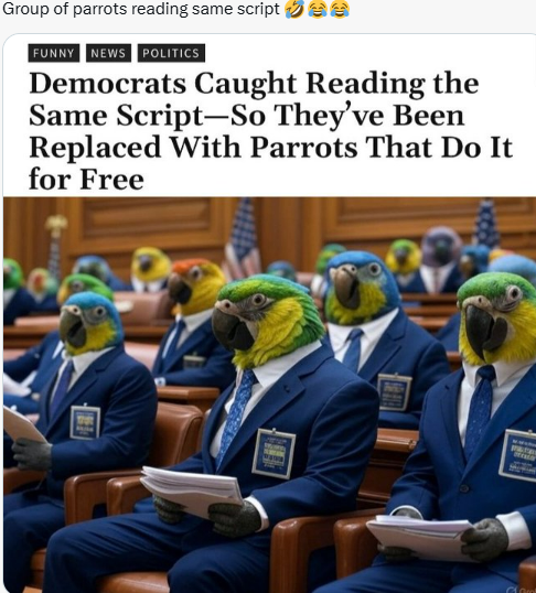 - Even though democrats like to do their collective media saying the same thing, I have to wonder if they have lost some of their operating capital from the closing of USAID, and now have to share one speech writer who just cc’s one speech to all of them.