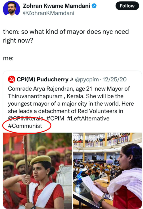 President Trump should invoke the Communist Control Act to BLOCK Zohran Mamdani from becoming Mayor of New York We HAVE to play hard ball. DOJ can EASILY establish communist ties, given Mamdani openly boosted a communist group and called for a communist mayor. He should also lose his status as a naturalized citizen, given he began associating with communists within 5 years of becoming a U.S. citizen. – Nick Sortor