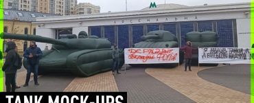 Inflated tank dummies deployed at Kiev streets